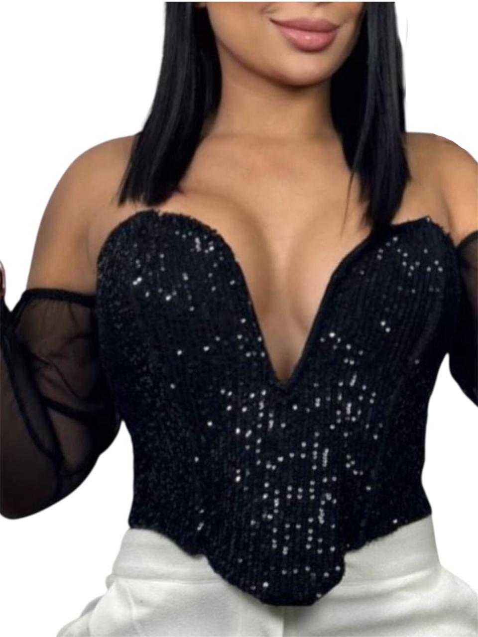 Blusa con lentejuelas que brinda un toque de brillo y glamour a tu guardarropa. Diseñada con detalles de lentejuelas estratégicamente colocadas para un efecto deslumbrante sin excesos. La tela base proporciona comodidad y facilidad de movimiento, mientras que los adornos añaden ese toque especial para ocasiones memorables. Perfecta para noches de fiesta, eventos o cuando deseas destacar con estilo. Una prenda versátil que transforma cualquier look en algo extraordinario y sofisticado.