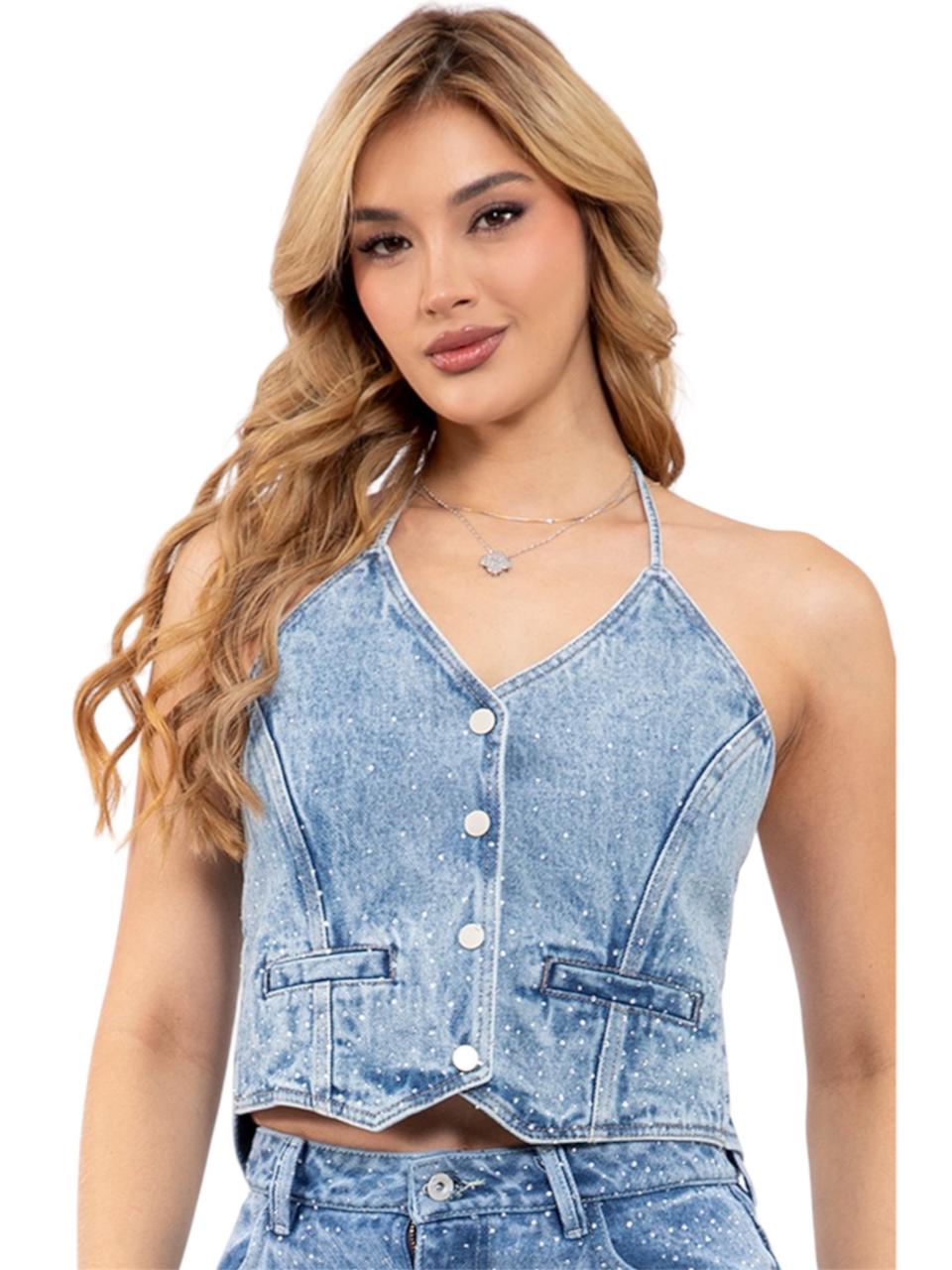 Chaleco versátil confeccionado con detalles en piedras que añaden un toque sofisticado a tu look. Perfecto para capas en cualquier estación, combina comodidad con estilo contemporáneo. Ideal para ocasiones casuales o más formales, este chaleco se adapta a diferentes outfits y personalidades. Eleva tu guardarropa con una prenda que destaca por su diseño único y acabados de calidad.