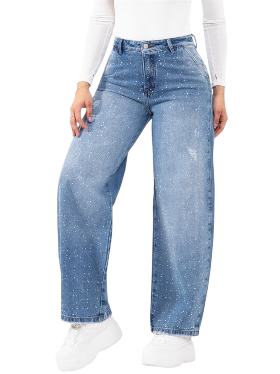 JEAN BARREL CON BRILLO Diseñado para quienes buscan un look moderno y versátil, este jean barrel combina comodidad con estilo contemporáneo. Su corte recto y relajado proporciona libertad de movimiento, mientras que el acabado brillante le añade un toque sofisticado a cualquier outfit. Perfecto para usar en el día a día o en ocasiones casuales, este pantalón es una pieza clave que complementa fácilmente tu guardarropa. Disponible en tallas variadas para un ajuste ideal.