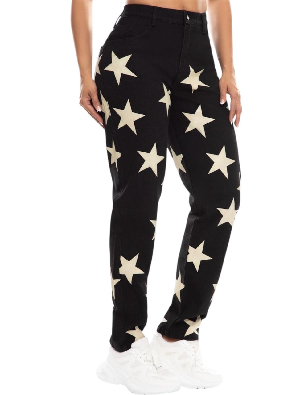 Este jean con diseño de estrellas combina estilo y comodidad para complementar cualquier look casual. Está confeccionado con materiales de alta calidad que ofrecen durabilidad y un ajuste cómodo durante todo el día. Ideal para quienes buscan una prenda versátil con un toque moderno y divertido.