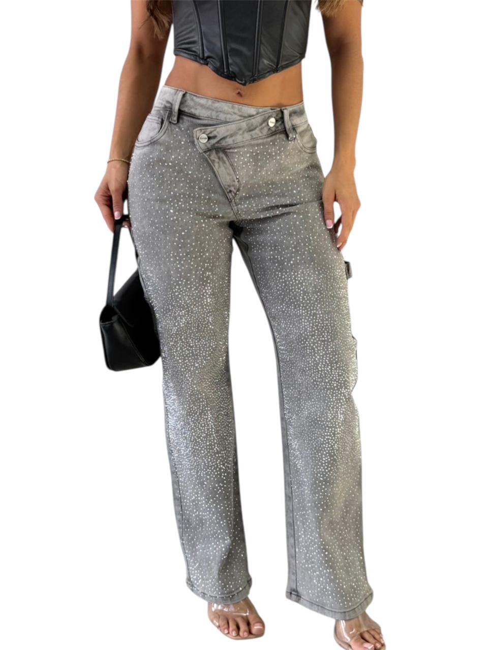 JEAN GRIS BRILLOS Pantalón vaquero en tono gris con detalles brillantes que añaden un toque de elegancia y sofisticación a tu look. Confeccionado con denim de calidad, ofrece comodidad y durabilidad para el uso diario. Los brillos estratégicamente distribuidos crean un efecto luminoso que destaca sin ser excesivo, perfecto para ocasiones casuales o semi-formales. Diseño versátil que combina fácilmente con diferentes prendas de tu guardarropa. Una opción moderna para quienes buscan estilo con personalidad.