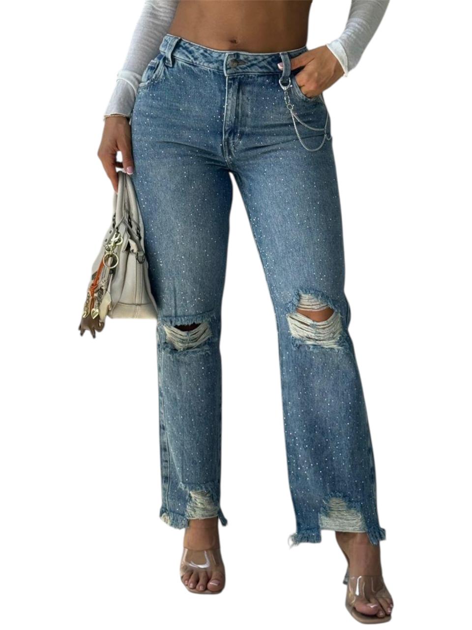JEAN PIEDRAS Pantalón clásico con un toque moderno que combina comodidad y estilo. Confeccionado en denim de calidad, este jean presenta detalles de piedras que le dan un acabado sofisticado y diferenciador. Perfecto para crear looks casuales o semi-formales, se adapta a cualquier ocasión. Su corte versátil y tela resistente garantizan durabilidad y confort durante todo el día. Un básico imprescindible en tu guardarropa que eleva cualquier conjunto.